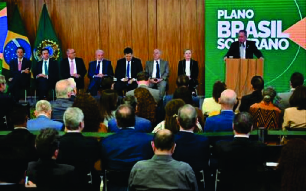 O presidente da CNI participou da solenidade de anúncio do Plano Brasil Soberano, na quarta-feira (13), no Palácio do Planalto, em Brasília, com o presidente Luiz Inácio Lula da Silva; o vice-presidente e ministro do Desenvolvimento, Indústria, Comércio e Serviços, Geraldo Alckmin; os ministros da Fazenda, Fernando Haddad, e das Relações Institucionais, Gleisi Hoffmann; e os presidentes da Câmara, Hugo Motta, e do Senado, Davi Alcolumbre.